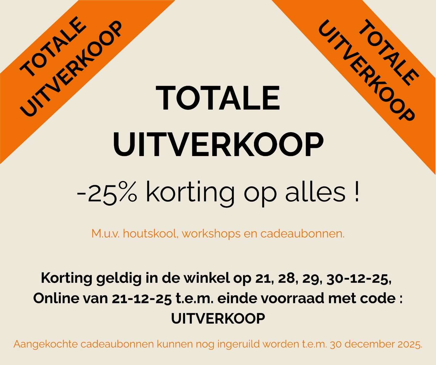 UITVERKOOP -25% OP ALLES*